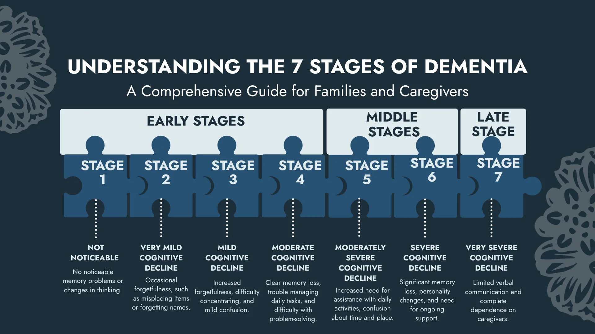 Dementia is a progressive condition that affects memory, thinking, and behavior. Understanding the different stages of dementia can help families and caregivers provide the appropriate care and support as needs evolve. While every individual's experience may vary, dementia is often categorized into three primary stages: early, middle, and late. Some professionals further break this progression into seven stages to offer more detailed guidance.
