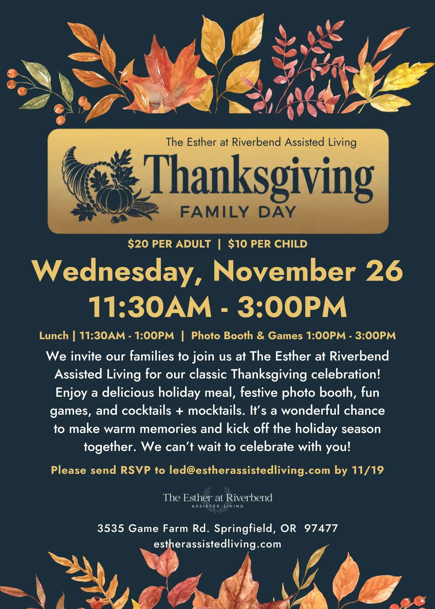 We’re inviting our families to join us at The Esther at Riverbend Assisted Living for our classic Thanksgiving celebration! This special gathering is one of our favorite traditions, and we’d love to share it with you.